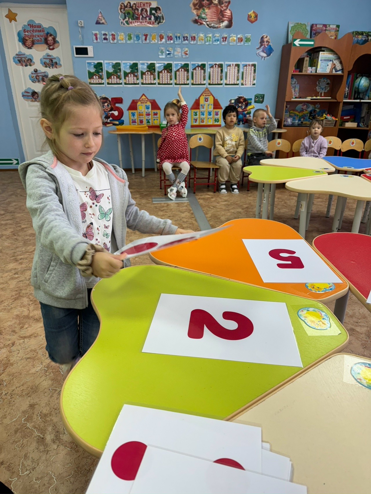 Закреплять умение устанавливать соответствие между количеством предметов, числом и цифрой