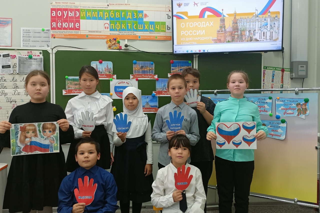 🇷🇺 День народного единства — государственный праздник, связанный с историческими событиями и напоминающий нам, что сила России в единстве. Города России — это воплощение этнокультурного многообразия и многонационального единства нашей страны, неразрывной связи прошлого, настоящего и будущего.На занятии обсудили, как города России отражают её богатую историю и культуру, и узнали о том, что делает нашу страну уникальной. Обсудили, как важно сохранять и уважать наследие предков, а также то, как мы можем внести свой вклад в сохранение единства и процветание России.