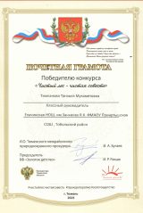 Это не просто очередной диплом, а доказательство высокого профессионализма, таланта и уважения коллег и учеников. На конкурсе Танзиля Мухаметовна прошла серьёзные испытания — открытые уроки, мастер-классы, презентацию педагогического опыта.