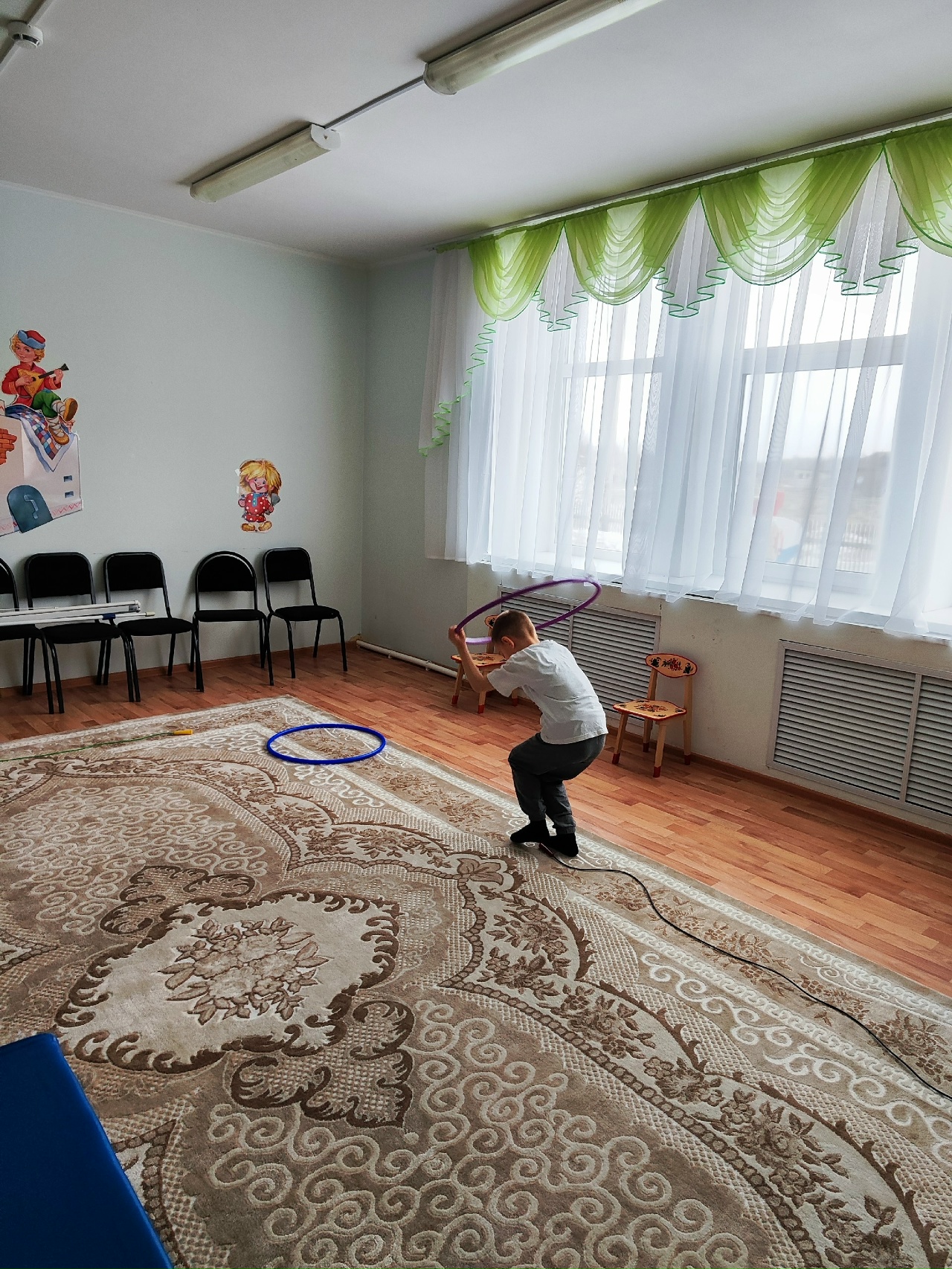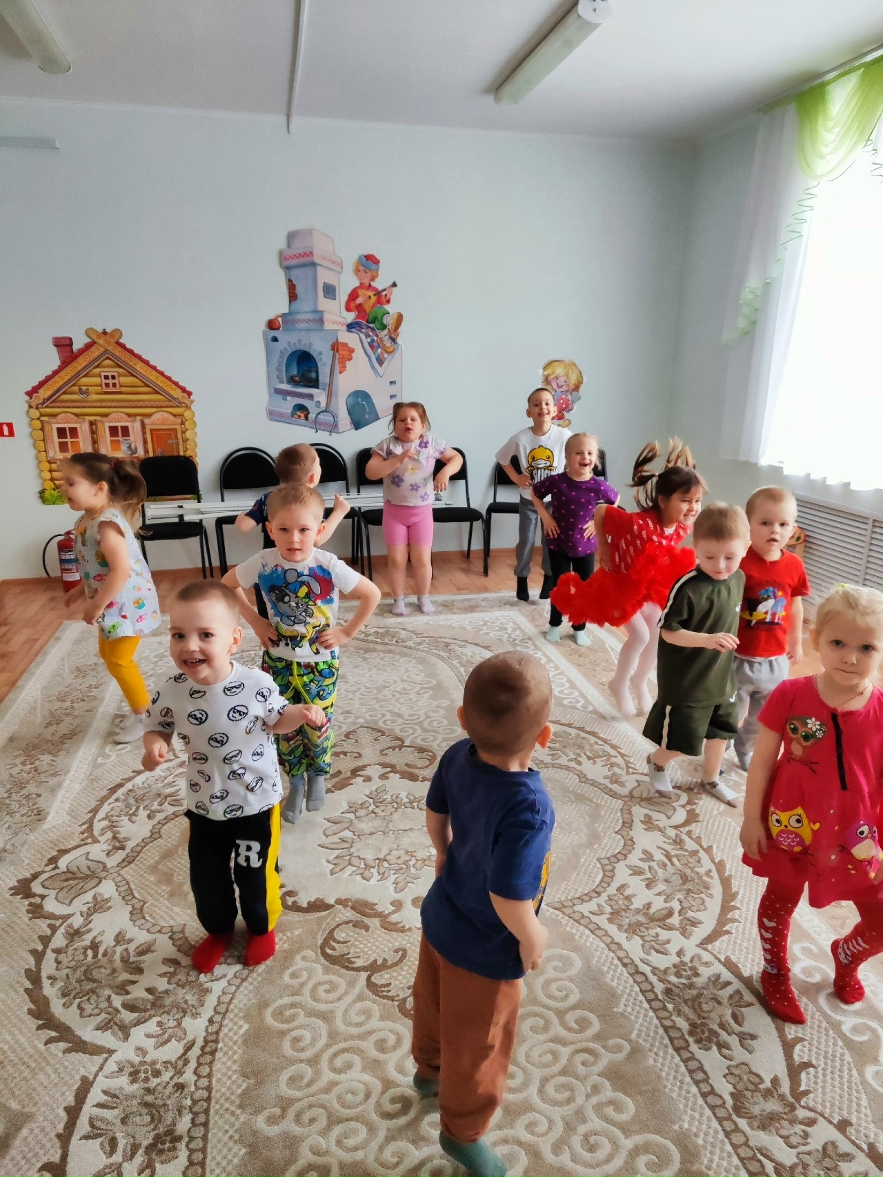 Дети прыгали и быстро бегали через преграды. Пели песенки, играли в догонялки.