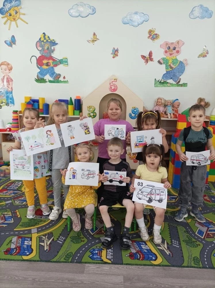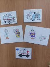 Наши малыши с большим энтузиазмом приняли участие в конкурсе рисунков, посвящённом важной теме : » Помоги бабушке- вызови скорую помощь».