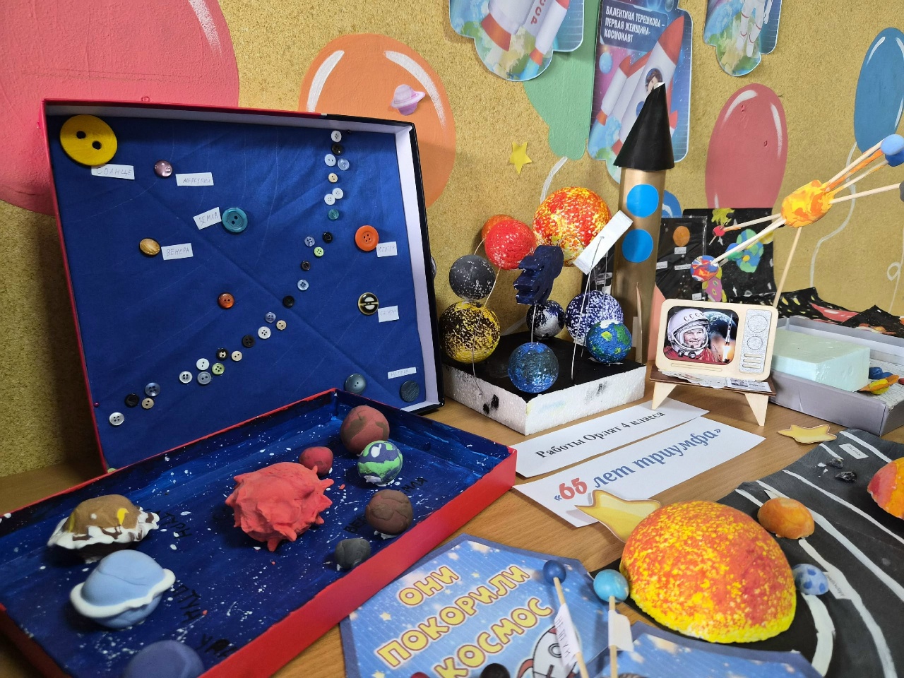 Учащиеся 1–5 классов подготовили творческие работы, посвященные знаменательной дате — 65-летию первого полета человека в космос.