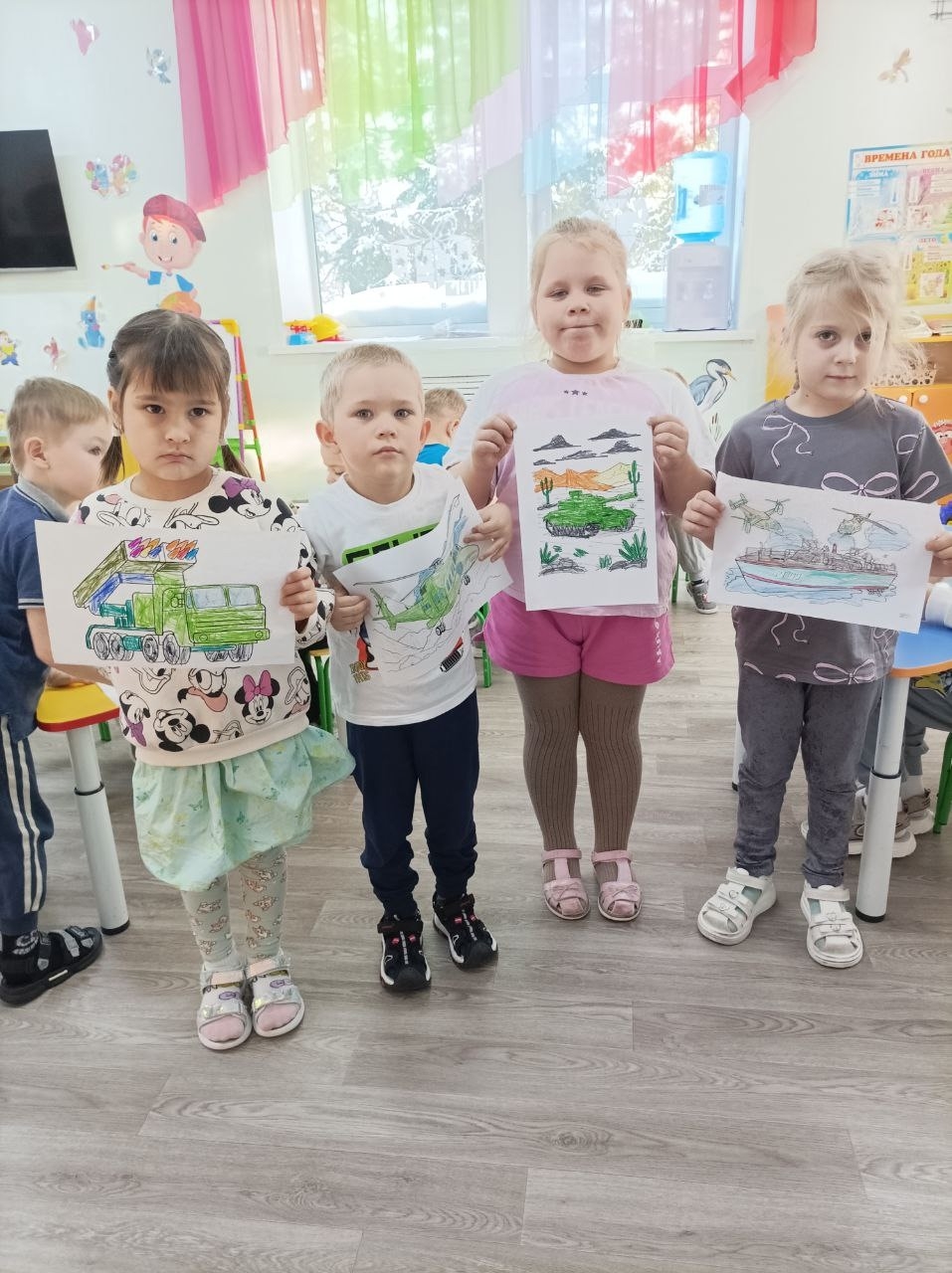 В детском саду в группе «Непоседы» прошла тематическая неделя «Военная техника». Дети изучили виды вооружений — наземную, воздушную и морскую технику, сравнивая их характеристики. Полученные знания закреплялись на занятиях рисованием и лепкой моделей танков, самолётов , кораблей. Это помогло расширить кругозор воспитанников и развить интерес к познанию.
