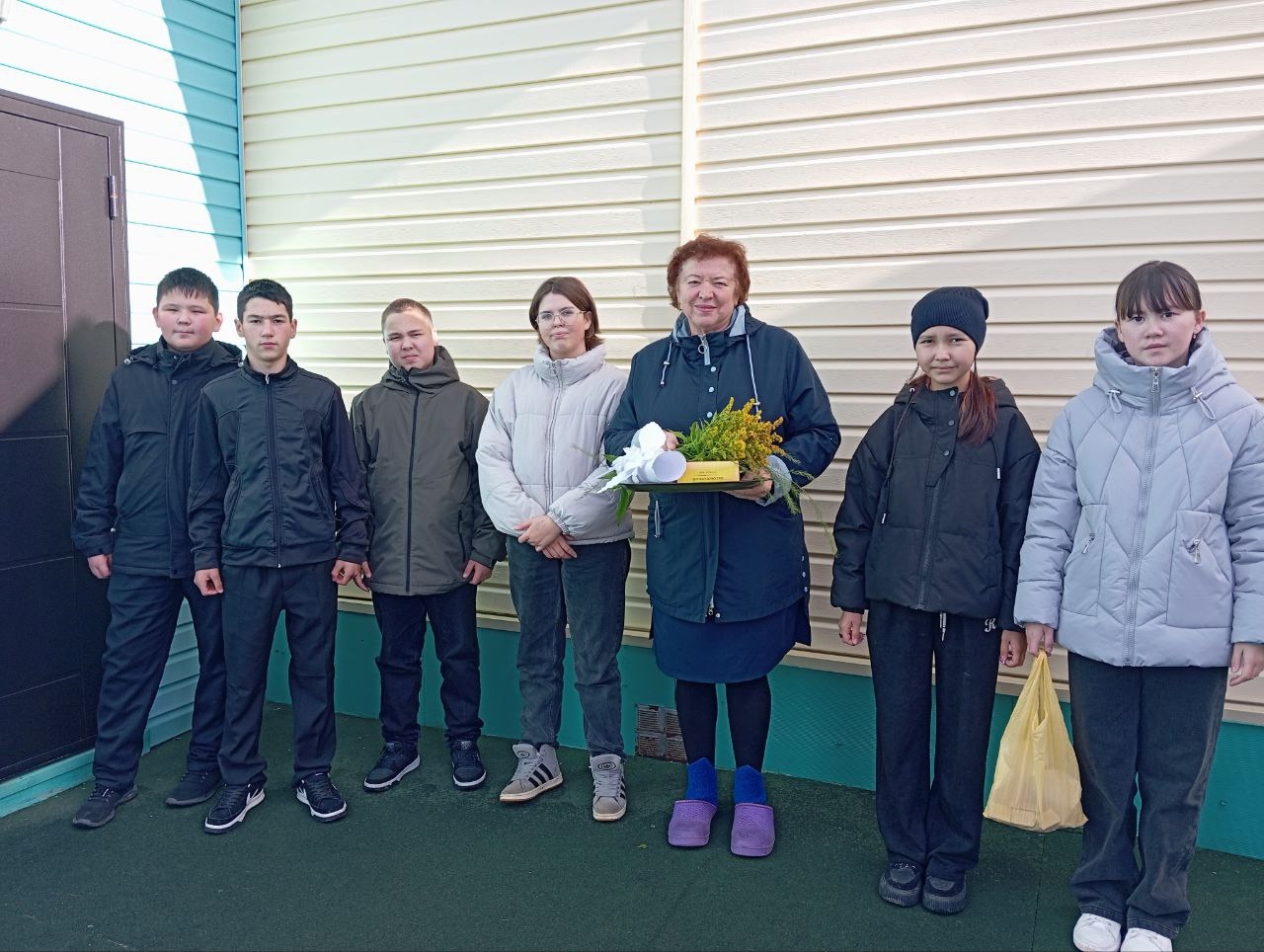 Перед днём Учителя, обучающиеся нашей школы поздравили ветеранов педагогического труда с наступающим праздником! Дорогие ветераны педагогического труда! Примите поздравления с днём Учителя и искренние пожелания долгих, здоровых, красивых лет! Ваш труд невозможно забыть, мы высоко ценим ваш вклад в образование наших выпускников! С праздником Вас, Валентина Афанасьевна, Татьяна Тимофеевна, Ираида Викторовна, Роза Сабировна, Клара Туктасыновна, Таир Зайнитдинович, Ирина Александровна, Зайтуна Зайнитдиновна, Рабига Нурисламовна, Анна Семёновна, Галина Тимофеевна, Ирина Витальевна