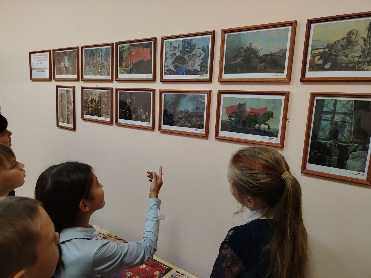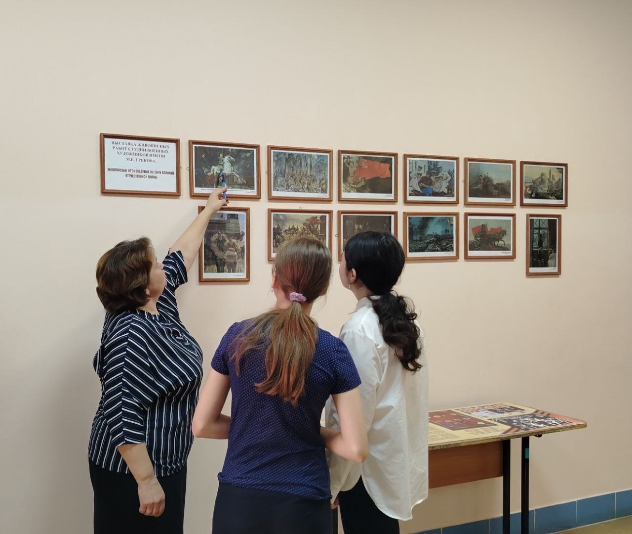 На выставке ребята познакомились с произведениями Студии военных художников имени М.Б. Грекова.Работы художников стали живым свидетельством героических страниц истории нашей страны. Через художественные образы школьники смогли прикоснуться к военной истории России, понять ценность подвига защитников Отечества и значимость патриотизма как основы национального самосознания.
