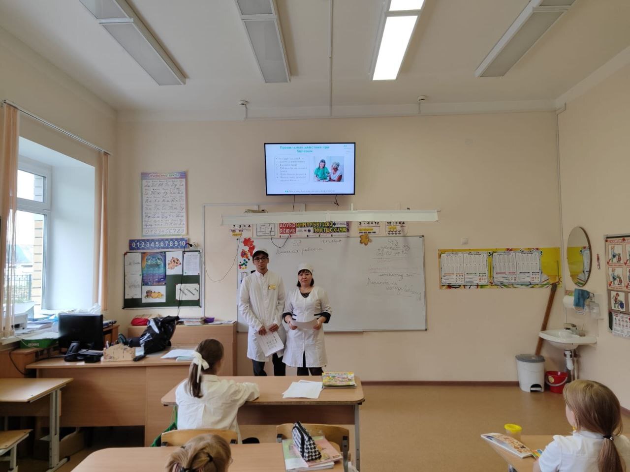 Сегодня студенты медицинского колледжа посетили наши начальные классы и провели интереснейшую беседу о профилактике гриппа.