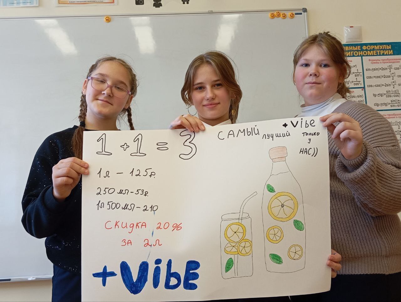 Сегодня учащиеся 6 класса на практикуме по математике создали рекламный плакат с ценами и скидками на продажу лимонада.