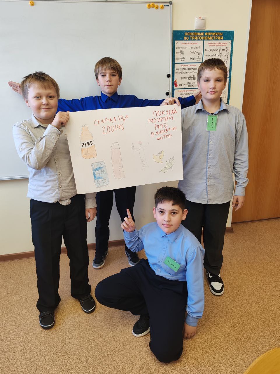 Особенность урока заключалась в командной работе, когда каждая команда выступала с презентацией своего проекта, рассказывала о целях бизнеса, рынке сбыта, целевой аудитории и конкурентных преимуществах.