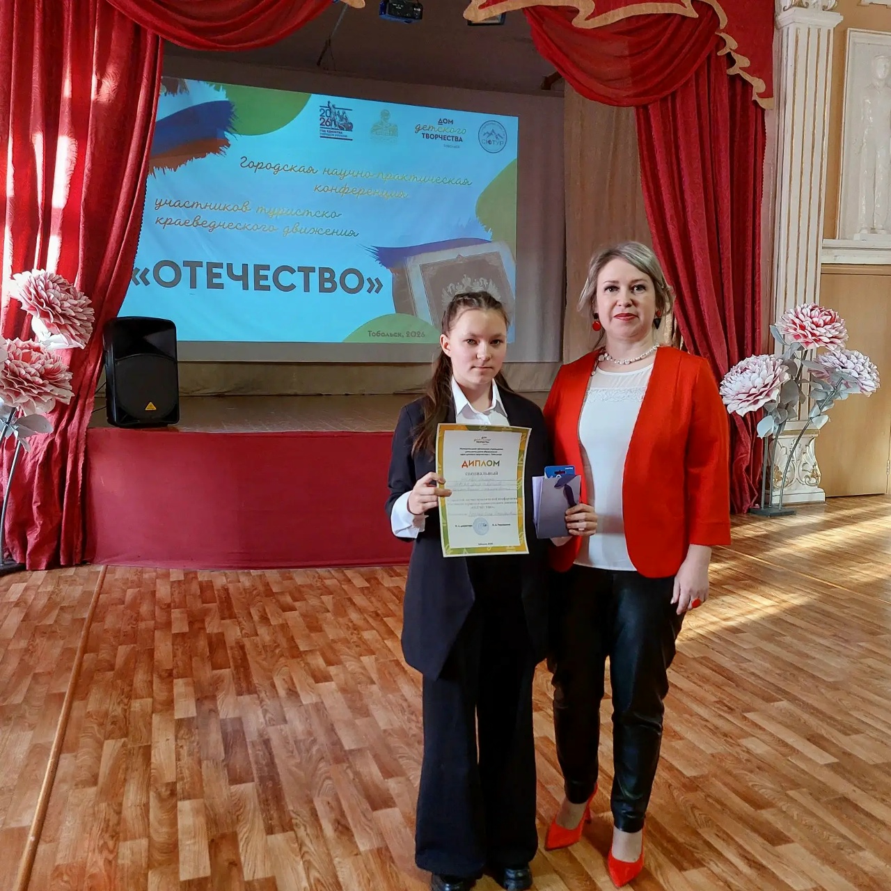 Как единственная участница от Тобольского округа (участвовали по приглашению) Галя получила Диплом и специальный приз. О. В. Бухаровой вручили Благодарственное письмо за подготовку Рысовой Галины к конференции. -