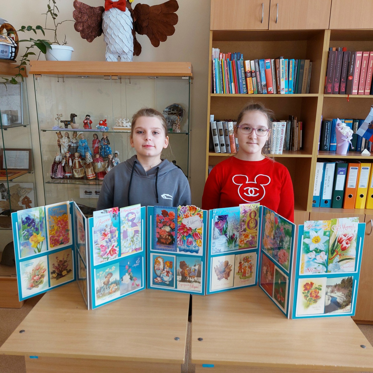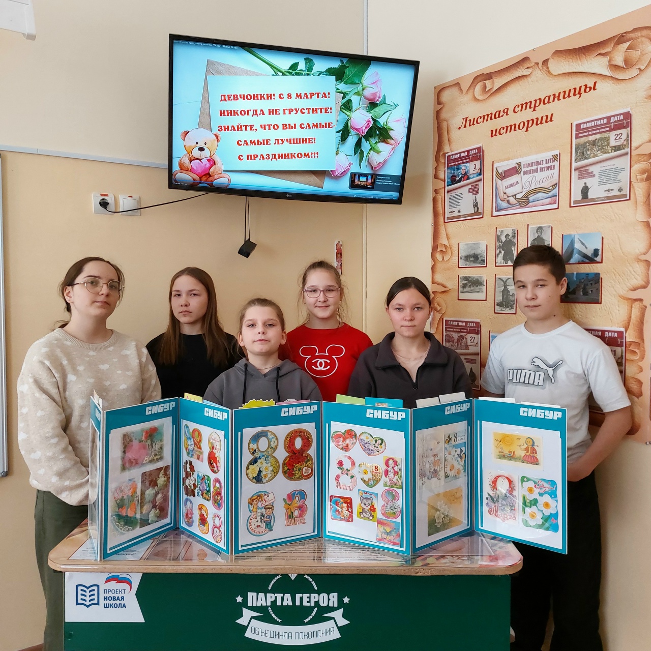 7 марта на краеведческом кружке царило предпраздничное настроение. Вика и Алина оформили выставку открыток с 8 марта. Сравнили открытки советского периода с современными. Остальные ребята помогали рассортировать фотографии со школьных мероприятий, подписать и разложить их в фотоальбомы. А потом чаепитие и праздничная викторина для девочек, посвященная весеннему дню. Единственный мальчик на этом занятии Зиновьев Даниил поздравил девочек с наступающим праздником.