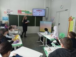 Занятие началось с просмотра видеоролика-анонса, подготовленного С. Петровой. Затем состоялась беседа на тему «Что такое космос?». Учащимся была показана презентация, из которой они узнали о первом космонавте, космических станциях и достижениях человечества в освоении космоса. После этого ребята посмотрели видеоролик «Зачем нам космос, если мы живём на Земле?». Далее они ознакомились с 2D-роликом «65 лет триумфа. Ко Дню космонавтики», после чего выполнили задание на рабочем листе. Особое внимание учащихся привлекли профессии, связанные с освоением космоса. В завершение занятия был показан видеоролик – интервью с Д. Бакановым, после чего ребята выполнили интерактивное задание «Собери ракету».Учащиеся пришли к выводу, что освоение космоса является одной из ключевых задач нашей страны.