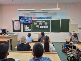 Первоклассники внимательно смотрели фильм «Детям о Сталинградской битве», с интересом слушали рассказ учителя, рассматривали фотографии и задавали вопросы.