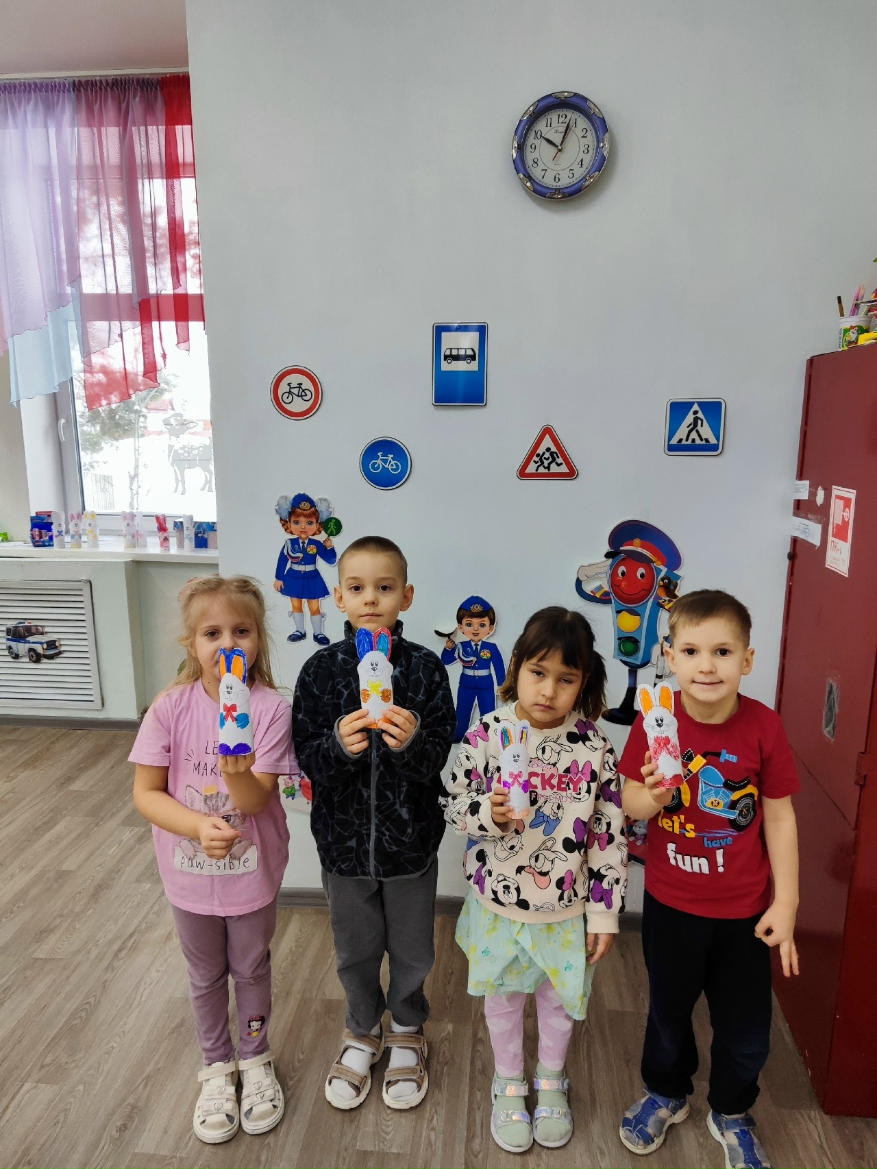 Сегодня наши дети решили сделать свои поделки из бумажных втулок. Используя белую бумагу, втулку, клей, фломастеры и применив творческие способности в своей работе, дети стали делать поделку — зайку. Посмотрите какие милые получились поделки. -