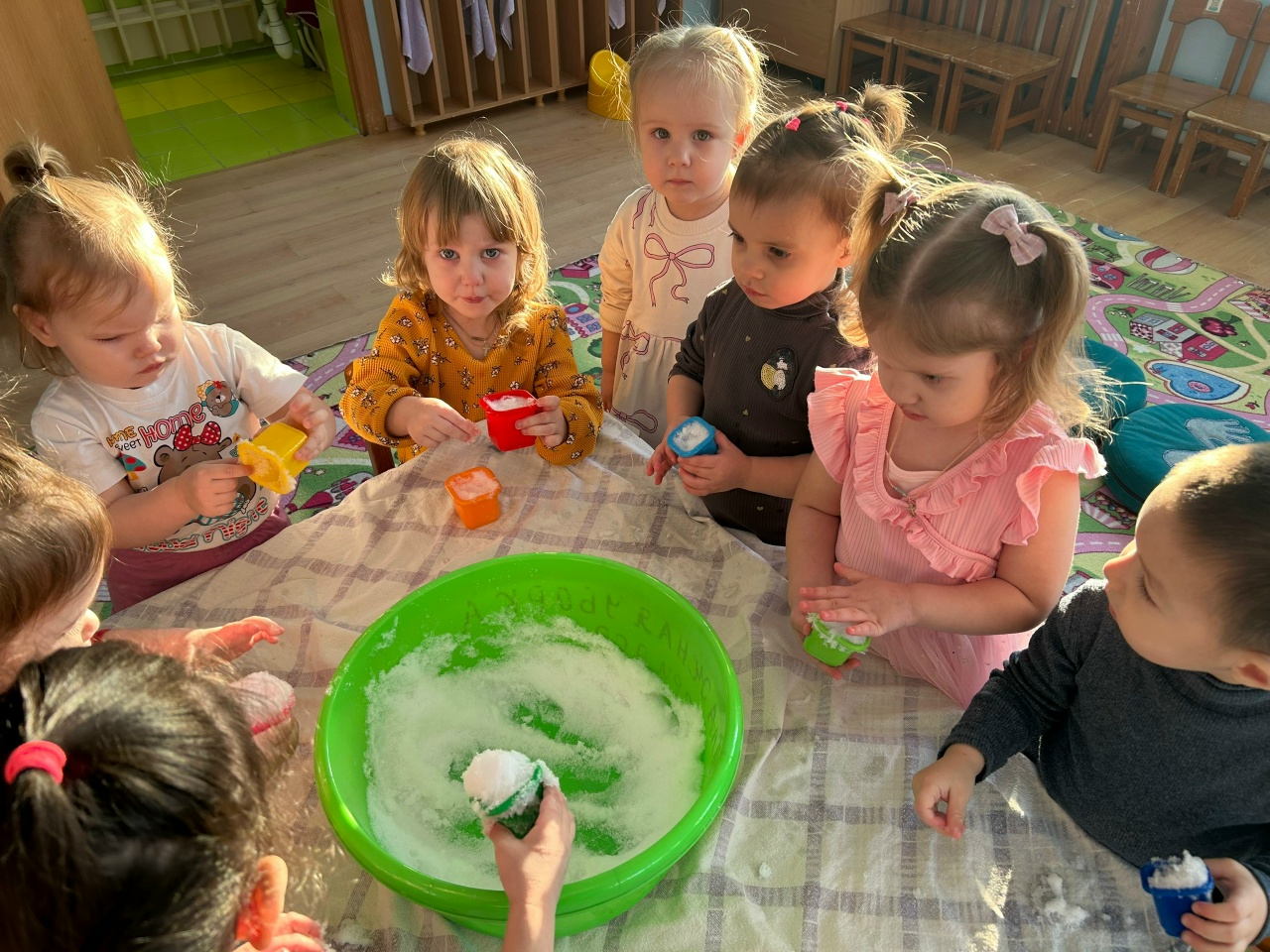 ️Эксперименты со снегом для младшей группы направлены на знакомство со свойствами снега (белый, холодный, тает) через простые опыты: тает в руках/в тепле (превращается в воду), можно лепить из него️ (как из влажного песка).Главное — сделать выводы понятными для малышей, например, что снег холодный, потом в тепле превращается в воду, и что он рыхлый.