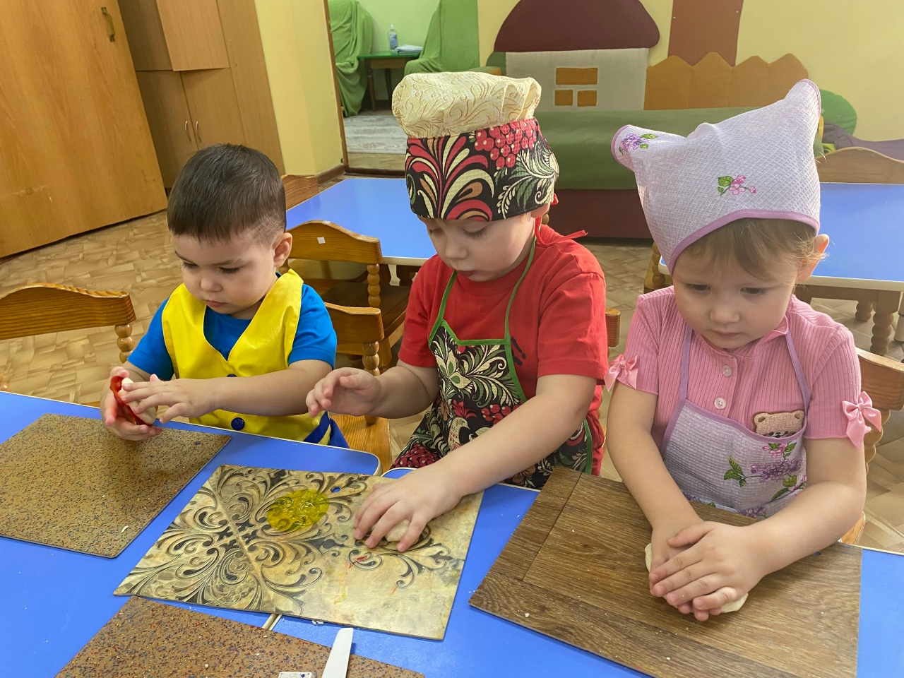 На занятии по лепке дети превратились в маленьких поварят. Их задача была проста, но важна — приготовить вкусный пряничек. Ребятишки использовали специальное солёное тесто, которое отлично подходит для творчества.