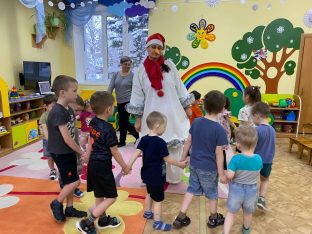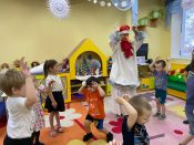 Снеговик пришёл в гости к ребятам, чтобы отпраздновать вместе с ними своё особое событие. Дети активно участвовали в играх и танцах, создавая атмосферу тепла и веселья. Настоящим сюрпризом для Снеговика стал большой рожок мороженого, подаренного детьми.