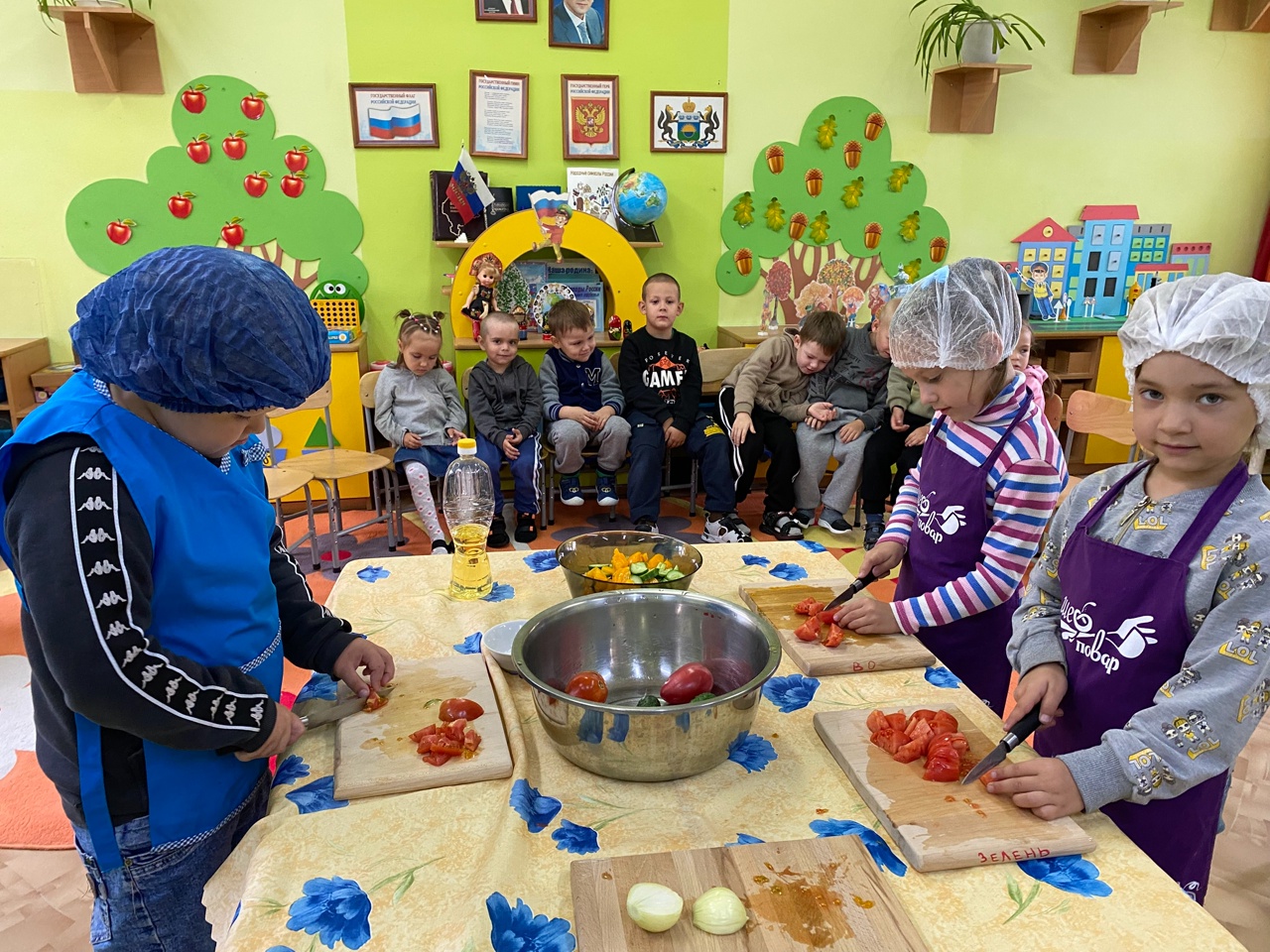 Дети старшей группы сегодня попробовали себя в роли поваров. Они приготовили овощной салат. Это отличный способ познакомить детей с основами здорового питания. Такие занятия не только развивают кулинарные навыки, но и учат детей заботиться о своем здоровье.